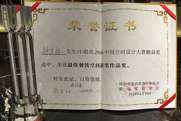 2015-06-08 21:21:20 祝賀朗昇設計餐廳設計作品榮獲深圳餐飲風云榜大獎
