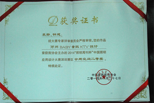2015-06-29 15:19:20 萬州Baby.K KTV設計作品喜獲中國會所空間設計大獎