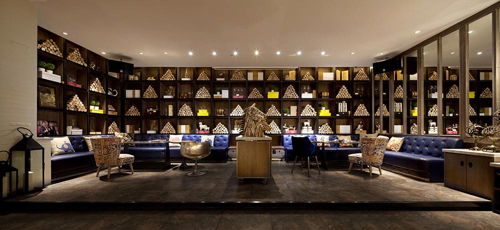 卡座設計與包房設計不分大小,均各有特色,因其具有一定的私密性,因此更適合親朋好友在此相聚。圓木製成的裝飾鏡,木片堆砌的馬頭造型,藍調味道的沙發(fā)窗簾,影影綽綽發(fā)光的鐵藝燈飾及舊式箱具等飾物,似乎每一個角落、每一件家私與飾物都經過精心設計或陳設搭配,使其整體上歐陸風情及懷舊韻味要比大廳區(qū)域顯得更濃重一些,整個空間內散發(fā)著更加閑適、溫馨的浪漫之感。