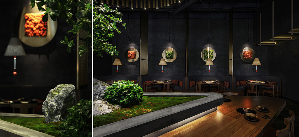 菩提只向心覓,何勞向外求玄,設(shè)計者的心中都有關(guān)于侘寂之美的理解,在這里我們把它解讀為物與物、物與人之間的寧靜、淡然與和解,希望通過情與景的交流讓每一位來到潤小館的人間食客都能褪去繁華、回歸純真、感受暖意。
