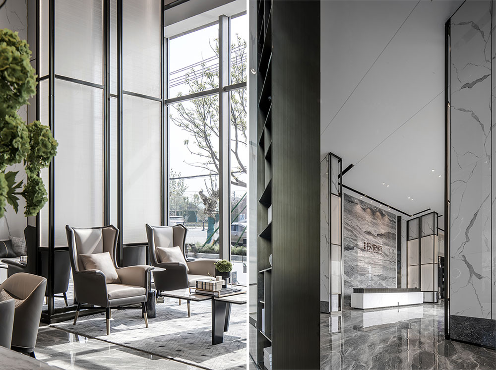 主要用材 :石材、不銹鋼、工藝玻璃、木飾面、茶鏡等