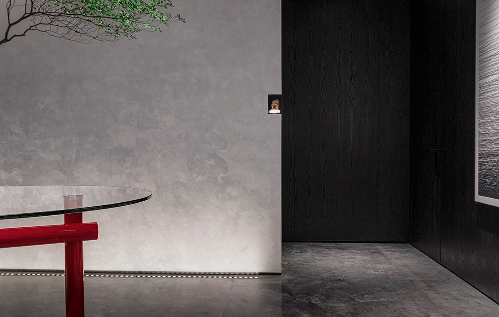 公共區(qū)域簡單擺放某個空間記憶里的石凳,大理石裝飾臺上意外出現(xiàn)的山石與翠綠,長廊盡頭畫面上靜止的海從另一個角度看迎面卻是熱情似火的紅色。喜歡的裝飾就那么隨性安置于某個空余的位置,奇妙的是,空間并沒有因此被填滿,反而出奇地和諧并趨于平靜。